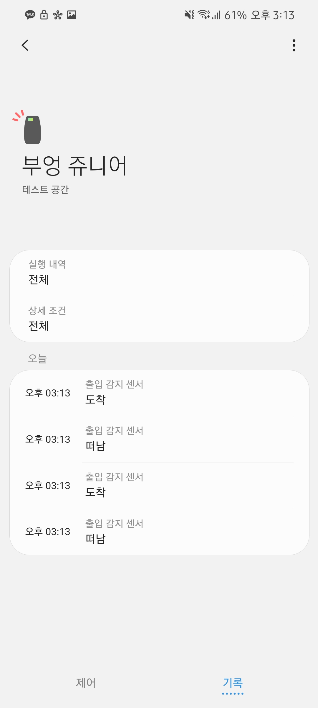 주의점!! 최초 등록시엔 확인중... 으로 떠요 기기 생성 이후 이벤트에 대해서만 표시되니 참고바래요