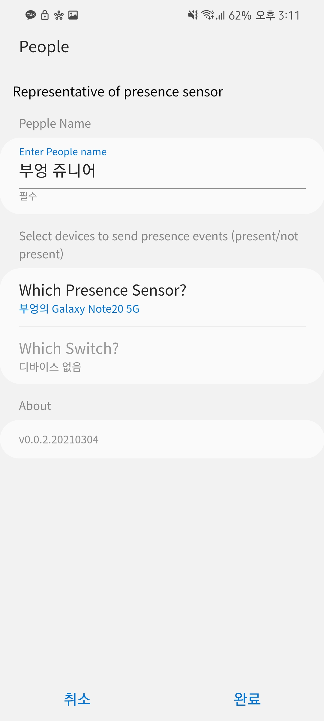 폰이 바뀌거나 대표 프레젠스 기기를 바꾸고 싶으시면 다시 설치하신 People에서 Which presence sensor만 바꿔주시면 끝~
