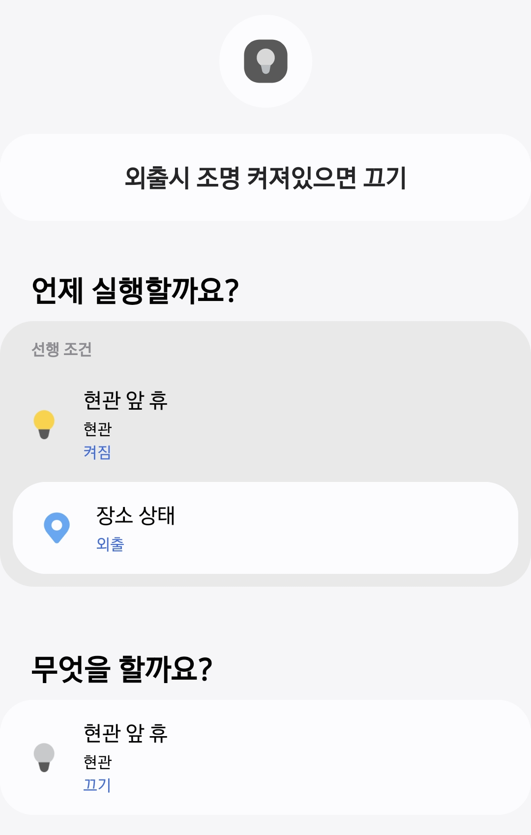 하지만 SmartThings에서는 장소 상태에 대한 정의를 ... 직접 자동화로 구성해주어야한다.