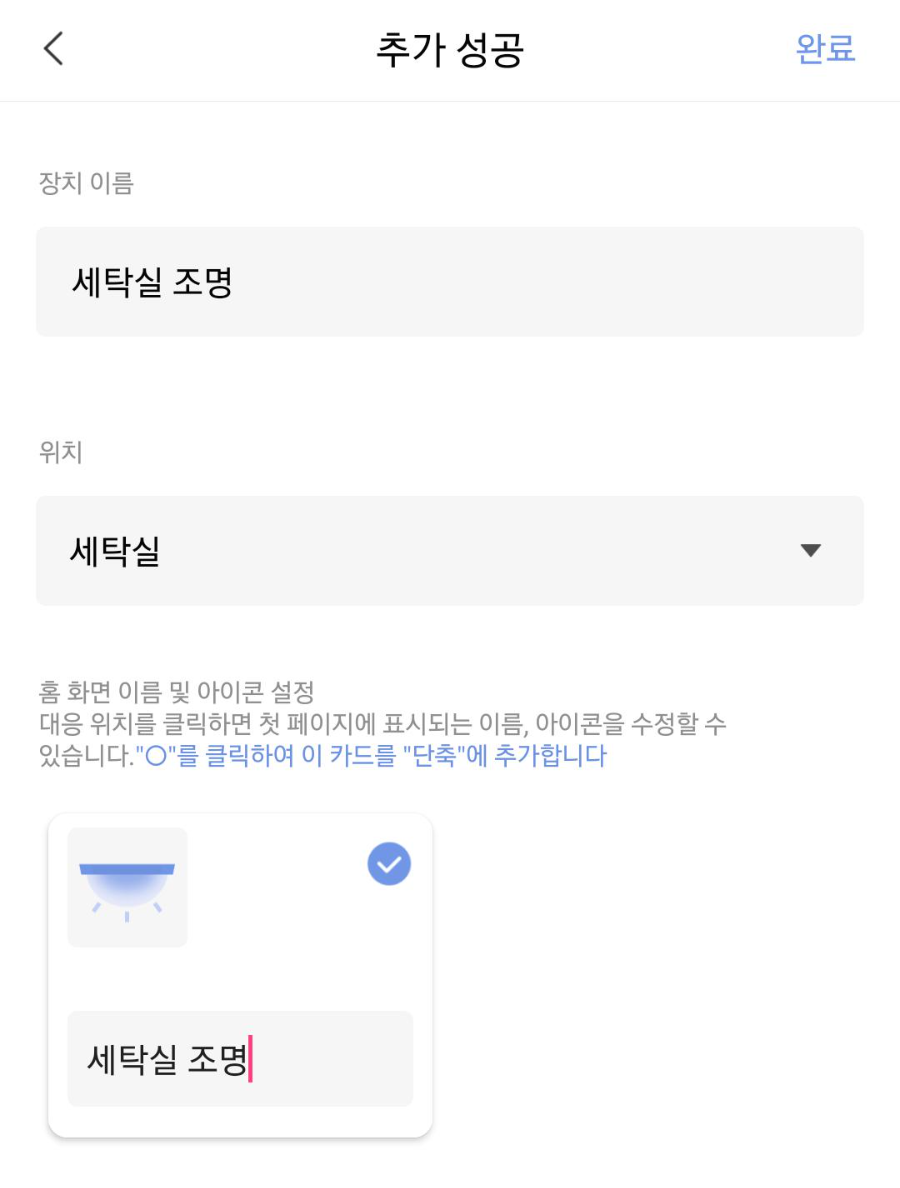 설정은 쉽죠? SmartThings처럼 아이콘 변경도 가능해요 아이콘은 SmartThings가 더이쁜거같네요 ㅎ