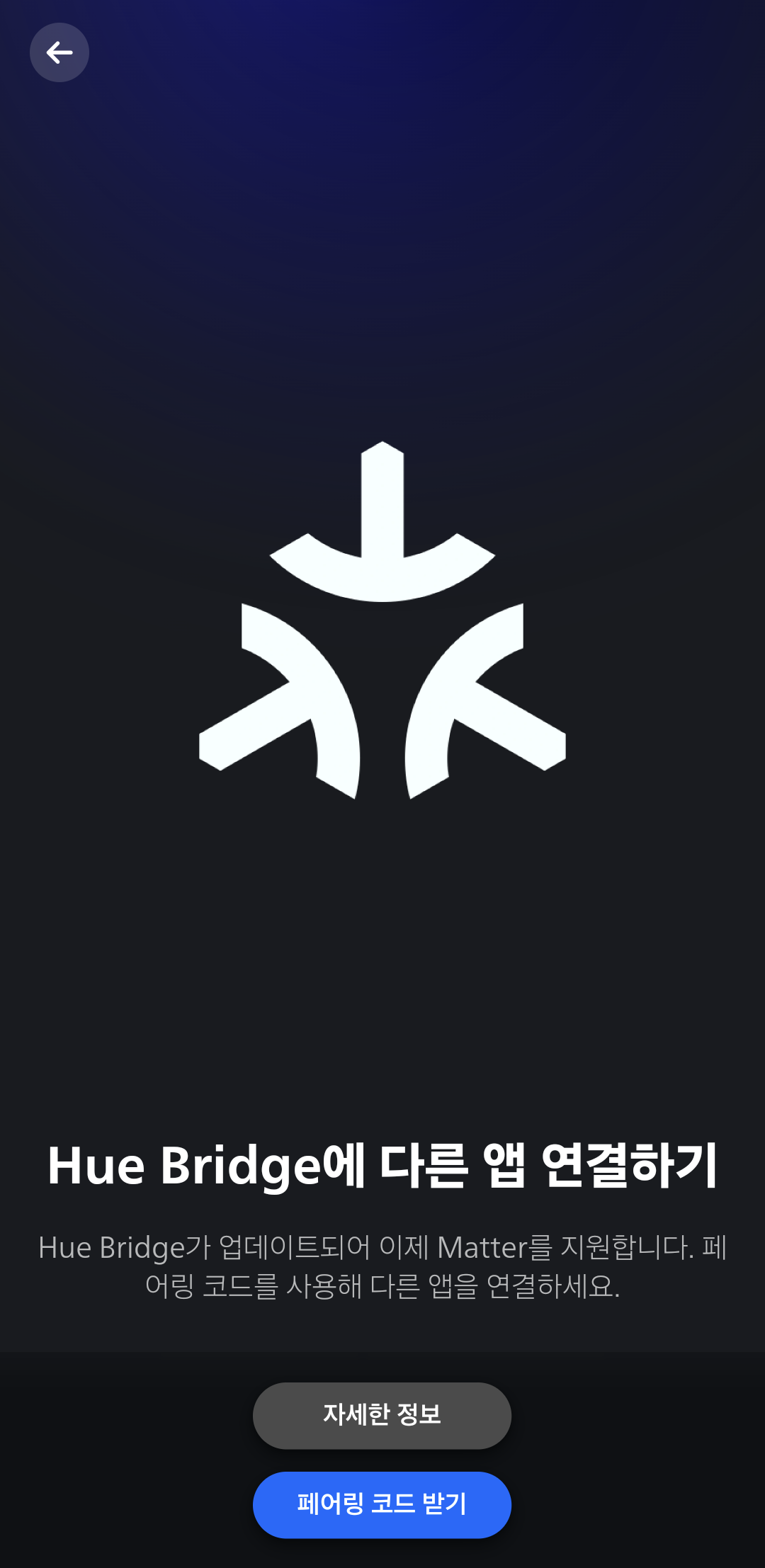 1. Hue app 으로 갑니다 가서 아래 스샷 순서대로 맨마지막 페어링 코드까지 간다음에 종료