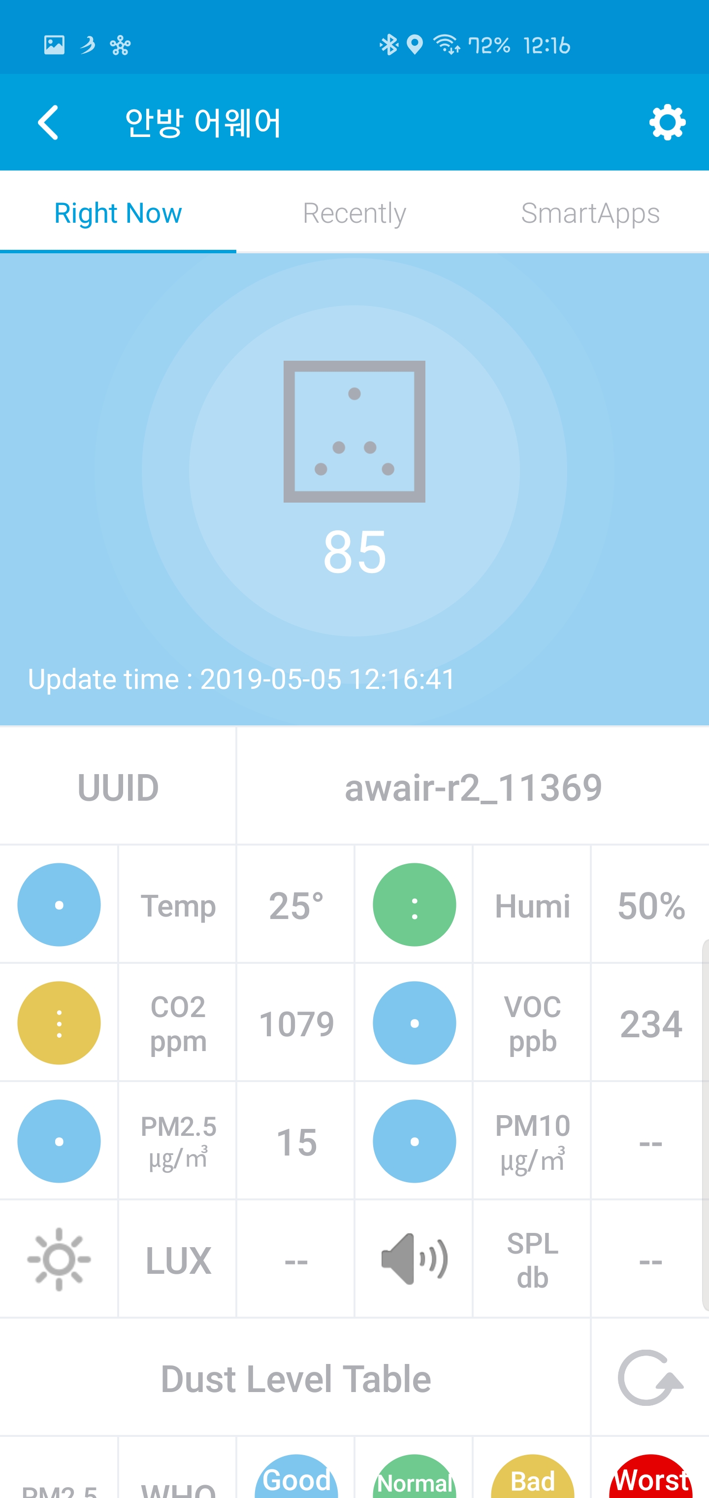1세대는 dust값을 PM2.5인지 PM10인지 몰라서 우선 PM10에 표시하도록했음