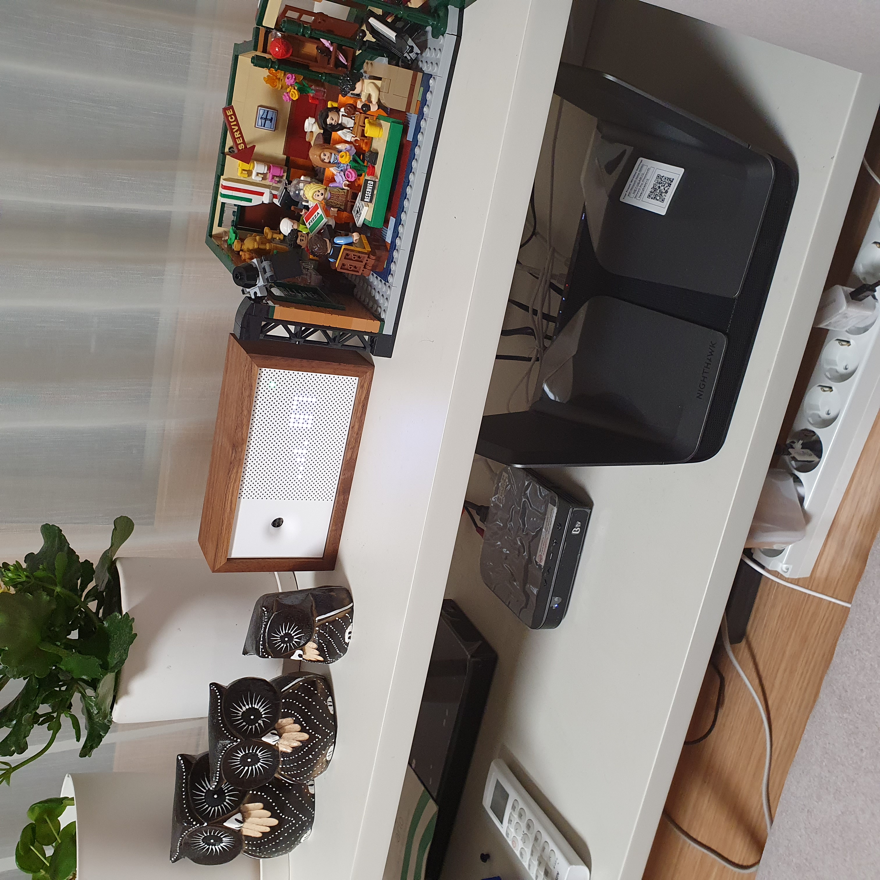 PC에 꼽은 LAN Cable을 거실에 있는 공유기 (아래 사진에서 우주선같은거) 의 WAN에 꼽습니다.