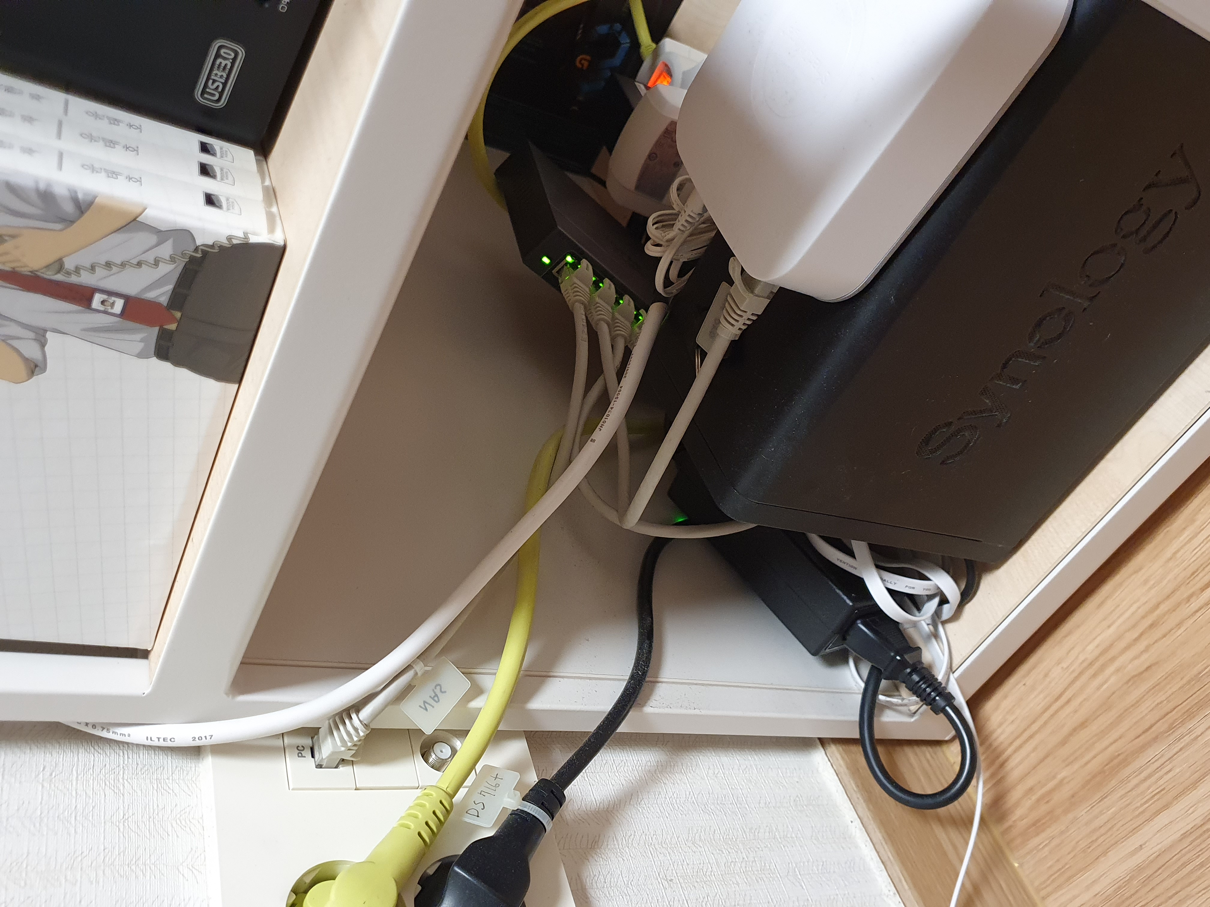 아래 사진 컴퓨터방을 보면 PC 부분에 랜선을 꼽고 8Port Switching hub에 연결해서 다시 퍼트려서