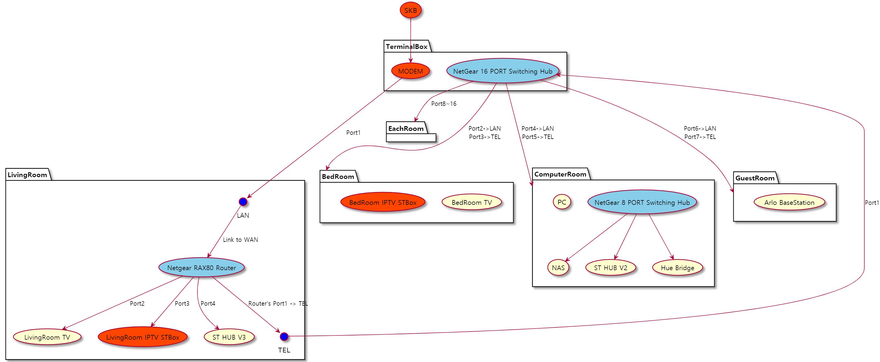 아래 사진에서 회색선 "거실 1" 이 보이시죠? 져부분이 거실의 TEL과 연결된 LAN Cable이에요 그 선을 어디다?