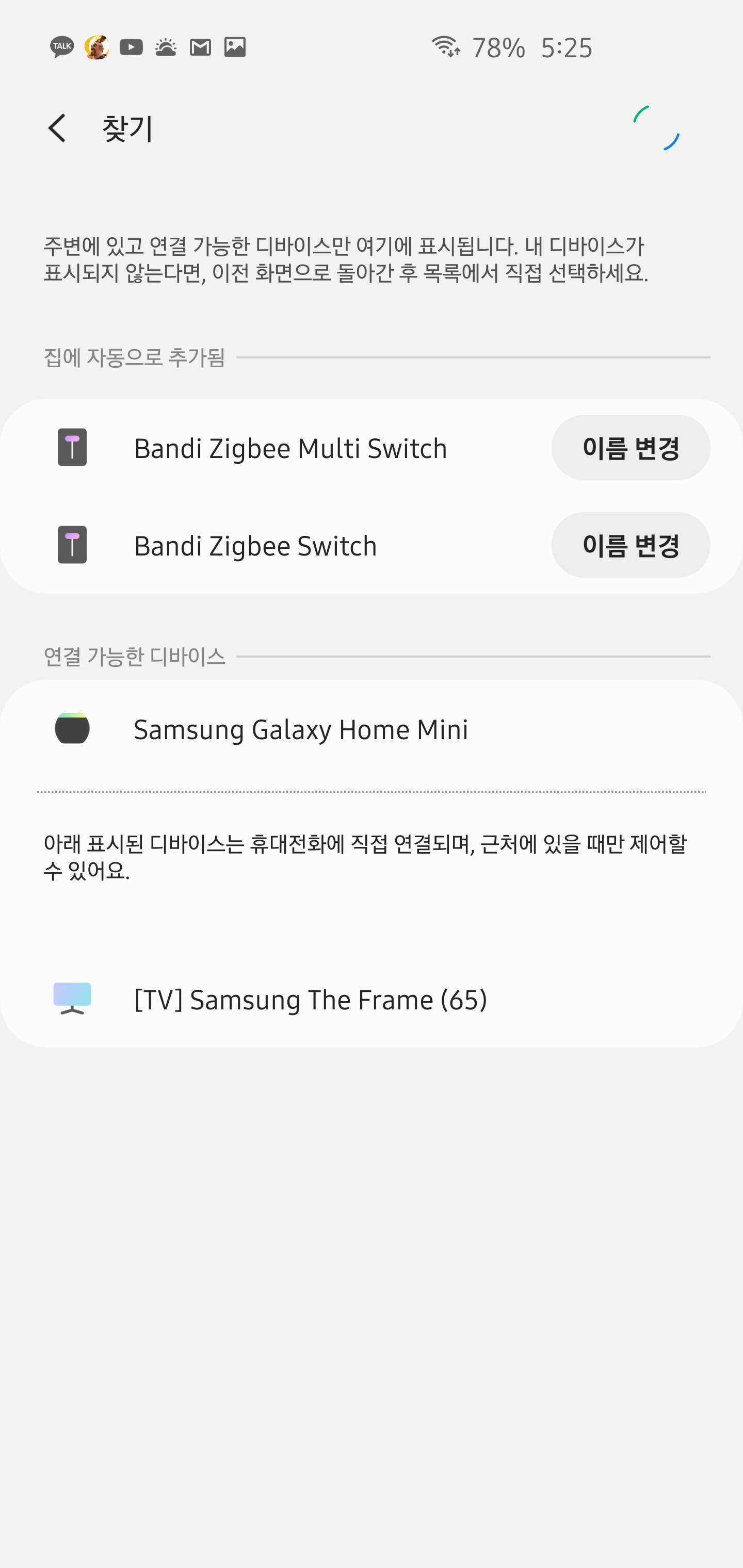 세탁실에 헤이홈x반디 스위치 1구 연결하고 SmartThings 모션 센서 감지되면 세탁실 조명 켜지게 해두었습니다.