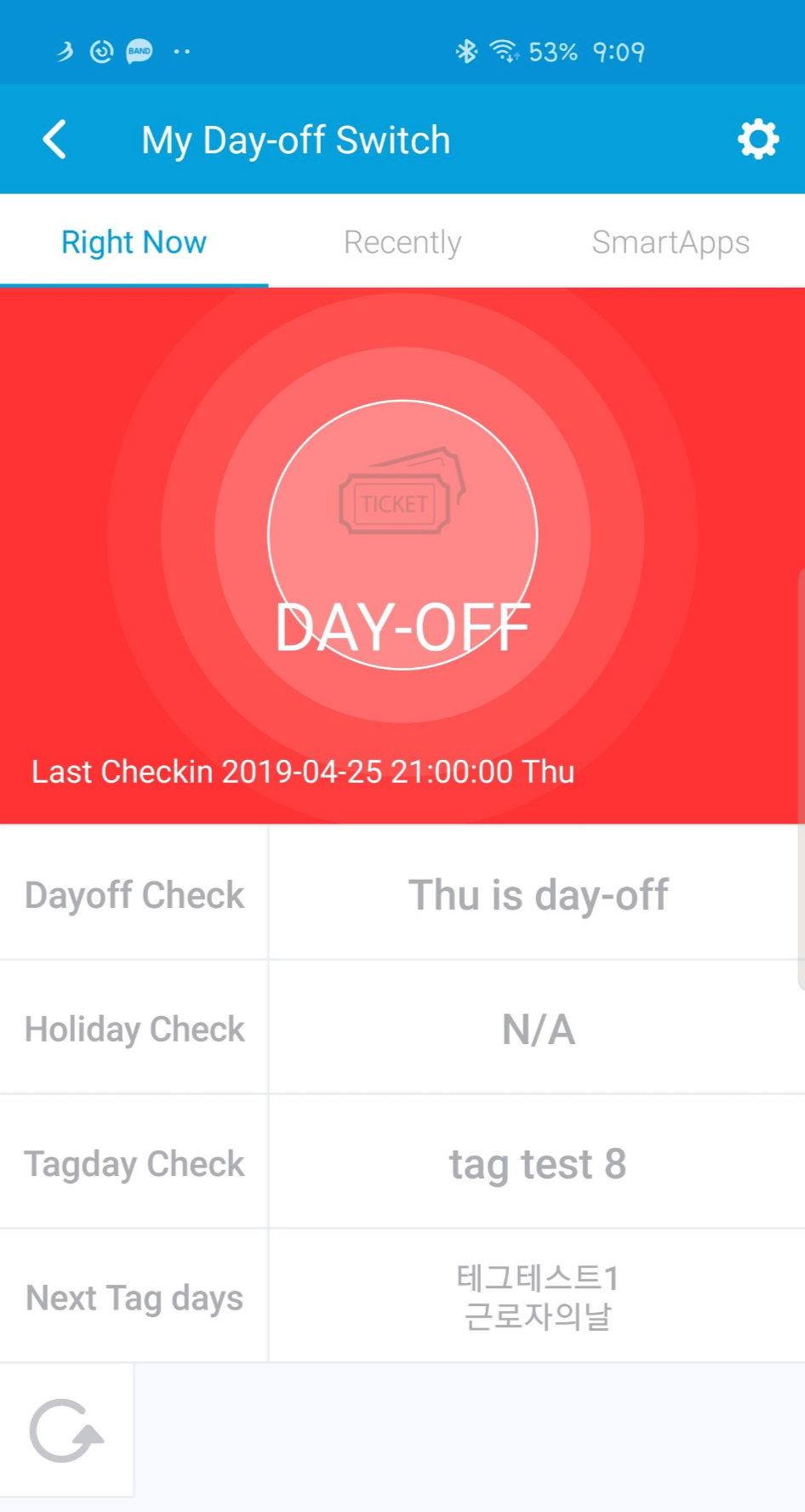 3. TAG - 본인 연차라던가? 근로자의날(구글에서 제공안함), 회사 창립기념일, 학교 개교기념일, 그리고 격주로 생성된 일정 생성시에 memo에 #dayoff만 넣어두면 알아서 휴일로 인지된다.