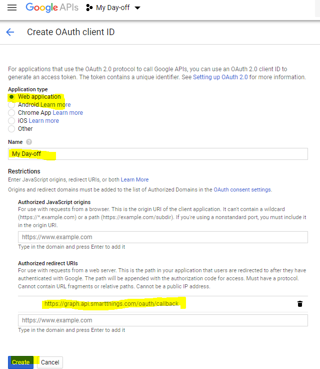 이제 Enable은 됬고 OAuth client ID를 발급받자
