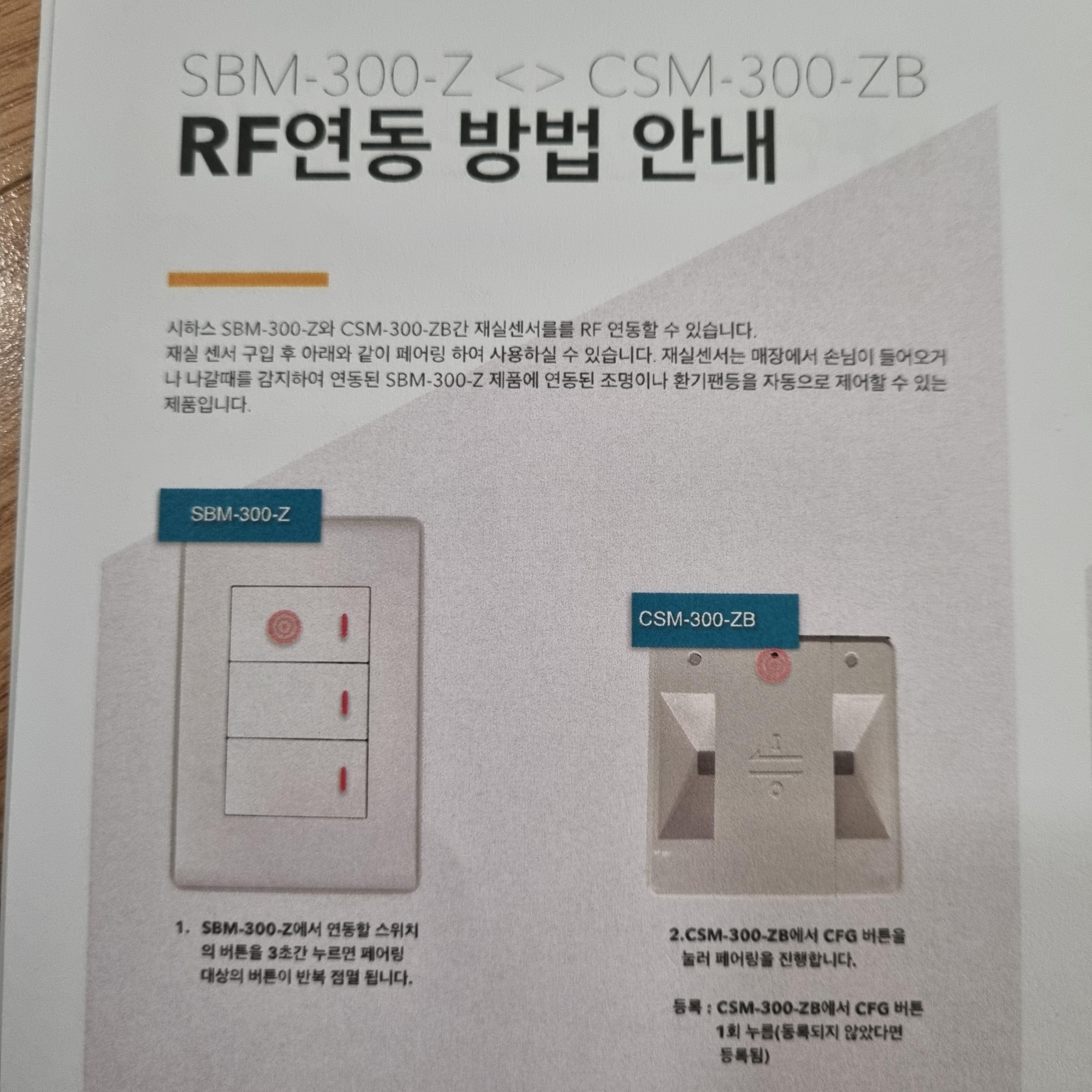 -> 스위치에서 연동할 버튼을 길게(3초이상) 눌러 RF페어링 대기상태로 만들고 카운터센서에서 CFG버튼 1회 누르면 됩니다.
